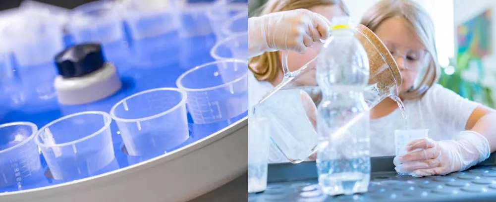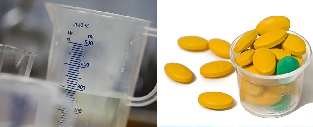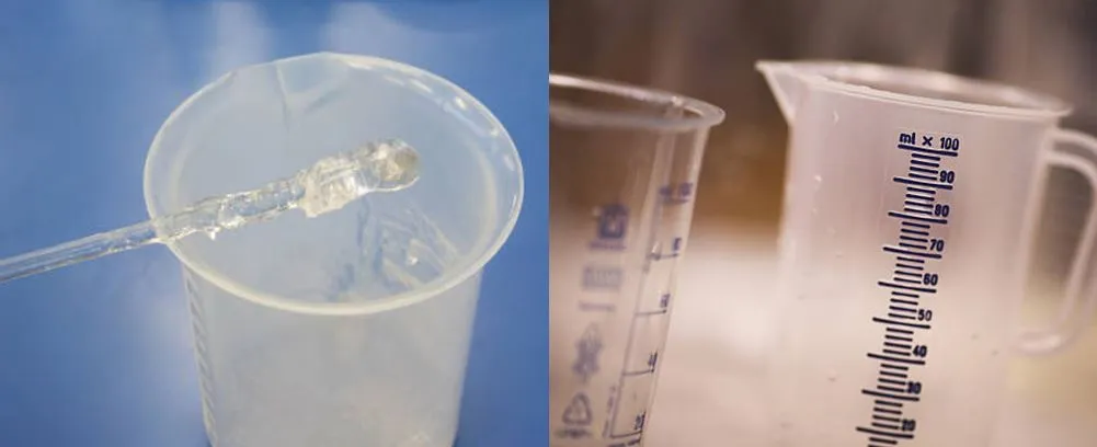 Plastične posode ni mogoče segreti ali uporabljati kot naprava za izmerjenje, ampak se uporablja za mešanje, redčenje, padavine itd. Zato ni mogoče natančno meriti zmogljivosti z oznako tehtnice na čaši, ker se zmogljivost raztopine meri z merilnim orodjem, kot sta merilni valj in merilna skodelica.